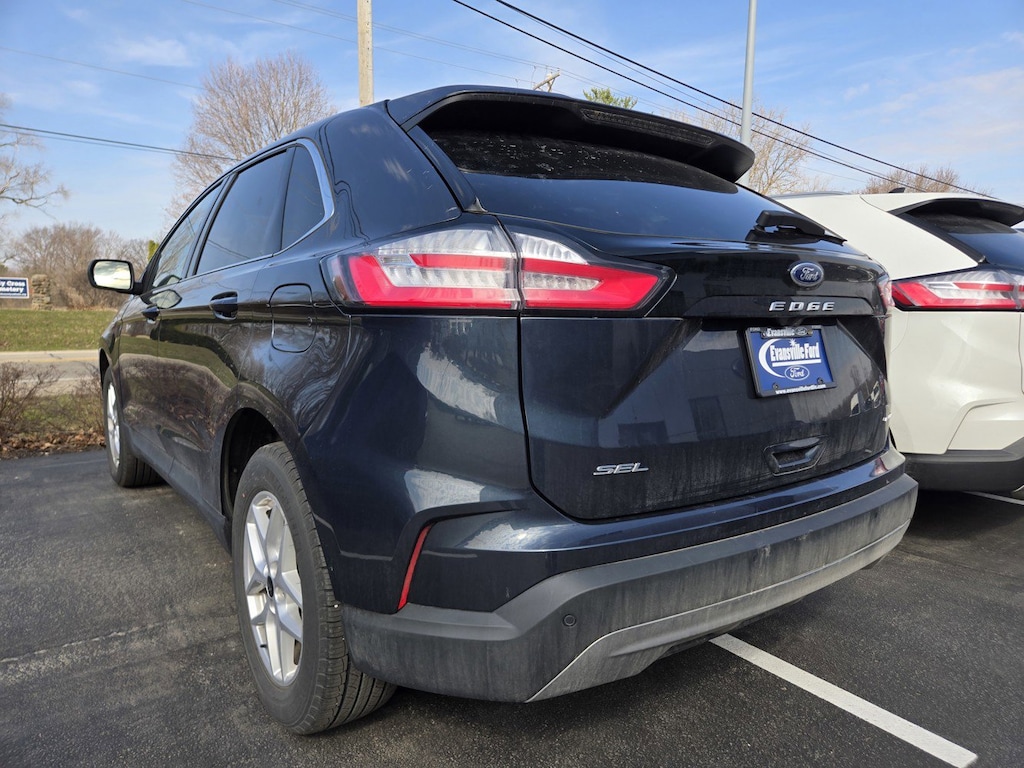 Edge SEL FREE OIL CHANGES FOR LIFE, 3.80 Axle Ratio, 4-Wheel Disc Brakes, 6 Speakers, ABS brakes, ActiveX Trimmed Heated Bucket Seats, Air Conditioning, Alloy wheels, AM/FM radio: SiriusXM with 360L, AM/FM Stereo, Auto High-beam Headlights, Auto-dimming Rear-View mirror, Automatic temperature control, Brake assist, Bumpers: body-color, Compass, Delay-off headlights, Driver door bin, Driver vanity mirror, Dual front impact airbags, Dual front side impact airbags, Electronic Stability Control, Emergency communication system: SYNC 4 911 Assist, FordPass Connect, Four wheel independent suspension, Front anti-roll bar, Front Bucket Seats, Front Center Armrest w/Storage, Front dual zone A/C, Front reading lights, Fully automatic headlights, Heated door mirrors, Heated front seats, Heated Steering Wheel, Illuminated entry, Knee airbag, Leather steering wheel, Low tire pressure warning, Occupant sensing airbag, Outside temperature display, Overhead airbag, Overhead console, Panic alarm, Passenger door bin, Passenger vanity mirror, Power door mirrors, Power driver seat, Power Liftgate, Power passenger seat, Power steering, Power windows, Rear anti-roll bar, Rear Parking Sensors, Rear reading lights, Rear seat center armrest, Rear window defroster, Rear window wiper, Remote keyless entry, SiriusXM w/360L, Speed control, Speed-Sensitive Wipers, Split folding rear seat, Spoiler, Steering wheel mounted audio controls, SYNC 4A w/Enhanced Voice Recognition, Tachometer, Telescoping steering wheel, Tilt steering wheel, Traction control, Trip computer, Variably intermittent wipers. Odometer is 6157 miles below market average! 21/28 City/Highway MPG