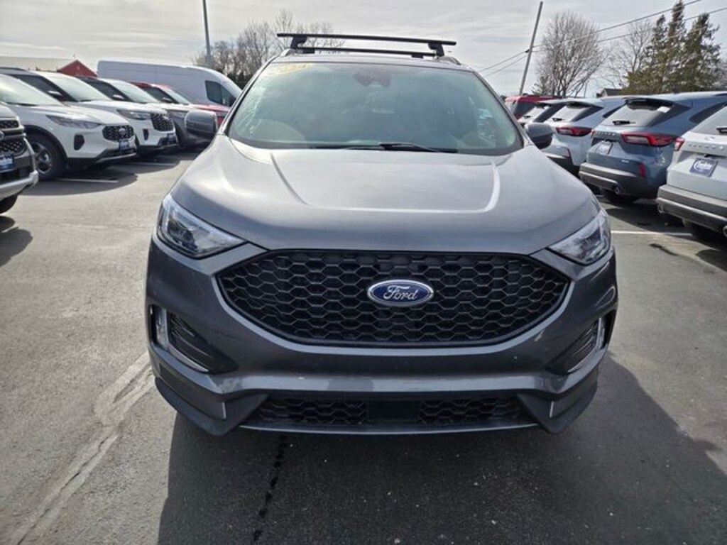 Edge ST Line 3.80 Axle Ratio, 4-Wheel Disc Brakes, 6 Speakers, ABS brakes, ActiveX Trimmed Heated Bucket Seats, Air Conditioning, Alloy wheels, AM/FM radio: SiriusXM with 360L, AM/FM Stereo, Auto High-beam Headlights, Auto-dimming Rear-View mirror, Automatic temperature control, Black Roof-Rack Side Rails, Brake assist, Bumpers: body-color, Class II Trailer Tow Package, Compass, Delay-off headlights, Driver door bin, Driver vanity mirror, Dual front impact airbags, Dual front side impact airbags, Electronic Stability Control, Emergency communication system: SYNC 4 911 Assist, FordPass Connect, Four wheel independent suspension, Front & Rear Floor Liners w/Carpet Mats, Front anti-roll bar, Front Bucket Seats, Front Center Armrest w/Storage, Front dual zone A/C, Front reading lights, Fully automatic headlights, Heated door mirrors, Heated front seats, Heated Steering Wheel, Illuminated entry, Knee airbag, Leather steering wheel, Low tire pressure warning, Occupant sensing airbag, Outside temperature display, Overhead airbag, Overhead console, Panic alarm, Passenger door bin, Passenger vanity mirror, Power door mirrors, Power driver seat, Power Liftgate, Power passenger seat, Power steering, Power windows, Rear anti-roll bar, Rear Parking Sensors, Rear reading lights, Rear seat center armrest, Rear window defroster, Rear window wiper, Remote keyless entry, SiriusXM w/360L, Speed control, Speed-Sensitive Wipers, Split folding rear seat, Spoiler, Steering wheel mounted audio controls, SYNC 4A w/Enhanced Voice Recognition, Tachometer, Telescoping steering wheel, Tilt steering wheel, Traction control, Trip computer, Variably intermittent wipers. 21/28 City/Highway MPG