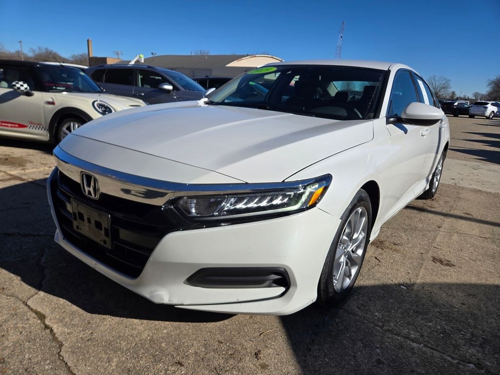 ONE OWNER, WELL MAINTAINED ACCORD!!, BLUETOOTH CONNECTIVITY, AUX INPUT & USB PORTS, DUAL ZONE AUTOMATIC CLIMATE CONTROL, REMOTE KEYLESS ENTRY, FORWARD COLLISION WARNING, REAR VIEW CAMERA, CRUISE CONTROL, AUTOMATIC HIGH BEAM HEADLIGHTS, DELAY-OFF, AUTOMATIC HEADLIGHTS, 17" ALLOY WHEELS, Black w/Cloth Seat Trim, Driver vanity mirror, Passenger vanity mirror, Speed-Sensitive Wipers, Telescoping steering wheel, Tilt steering wheel. White 2019 Honda Accord LX 1.5T I4 DOHC 16V Turbocharged VTEC FWD INSPECTED BY ASE CERTIFIED TECHNICIANS.