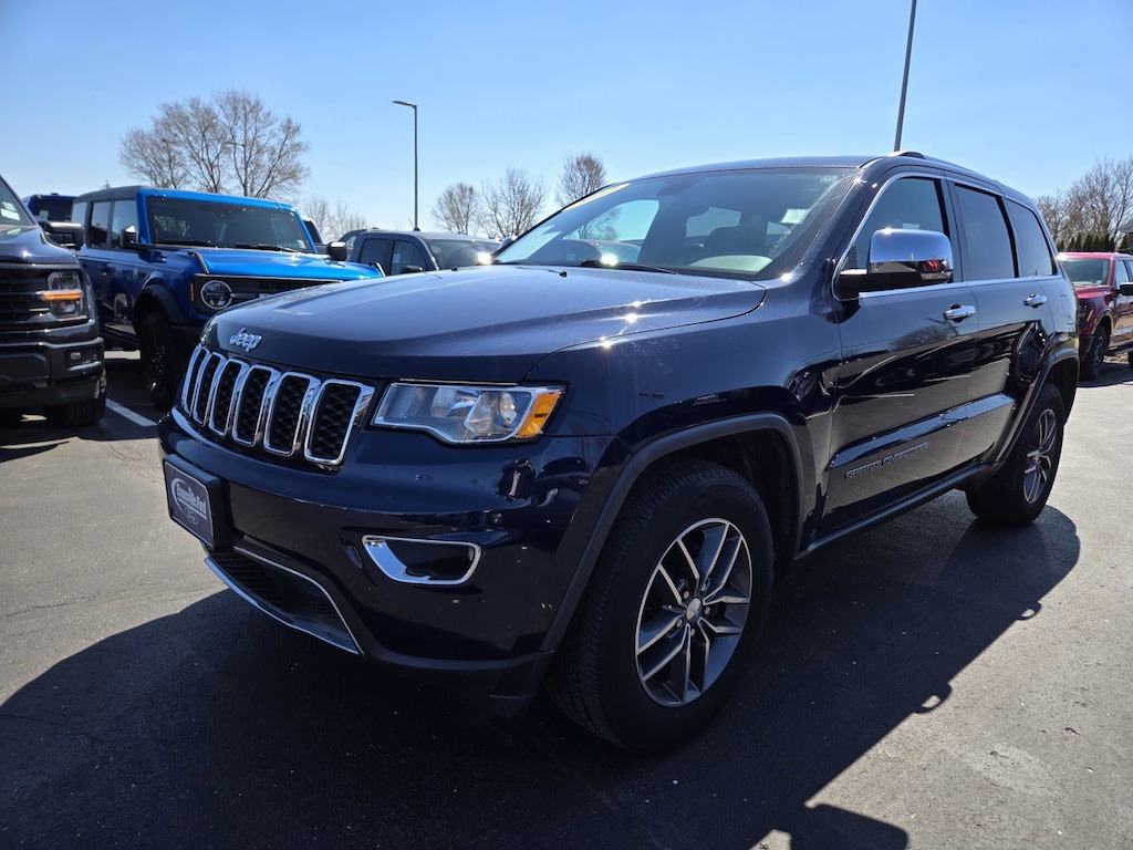 Grand Cherokee Limited LOCAL TRADE, 1-Year SiriusXM Radio Service, 3.45 Rear Axle Ratio, 4-Wheel Disc Brakes, 5-Year SiriusXM Traffic Service, 5-Year SiriusXM Travel Link Service, 6 Month Trial (Registration Required), 6 Speakers, 8.4" Touchscreen Display, ABS brakes, Air Conditioning, Alloy wheels, AM/FM radio: SiriusXM, Anti-whiplash front head restraints, Audio memory, Auto-dimming door mirrors, Auto-Dimming Exterior Passenger Mirror, Auto-Dimming Rear-View Mirror, Auto-dimming Rear-View mirror, Automatic temperature control, Blind Spot & Cross Path Detection, Brake assist, Bumpers: body-color, Compass, Delay-off headlights, Driver door bin, Driver vanity mirror, Dual front impact airbags, Dual front side impact airbags, Electronic Stability Control, Engine Oil Cooler, For Details Visit DriveUconnect.com, For More Info, Call 800-643-2112, Four wheel independent suspension, Front anti-roll bar, Front Bucket Seats, Front Center Armrest w/Storage, Front dual zone A/C, Front fog lights, Front reading lights, Fully automatic headlights, Garage door transmitter, GPS Antenna Input, GPS Navigation, HD Radio, Heated door mirrors, Heated front seats, Heated rear seats, Heated steering wheel, Illuminated entry, Instrument Cluster w/Off-Road Disp. Pages, Integrated Voice Command w/Bluetooth, Knee airbag, Leather Shift Knob, Leather Trimmed Bucket Seats, Low tire pressure warning, Memory seat, Normal Duty Suspension, Occupant sensing airbag, Outside temperature display, Overhead airbag, Overhead console, Panic alarm, ParkView Rear Back-Up Camera, Passenger door bin, Passenger vanity mirror, Power door mirrors, Power driver seat, Power Liftgate, Power passenger seat, Power steering, Power Sunroof, Power windows, Quick Order Package 23H, Radio data system, Radio: Uconnect 3 w/5" Display, Radio: Uconnect 3C Nav w/8.4" Display, Rear anti-roll bar, Rear reading lights, Rear seat center armrest, Rear window defroster, Rear window wiper, Remote keyless entry, Roadside Assistance & 9-1-1 Call, Roof rack: rails only, Security system, SiriusXM Satellite Radio, SiriusXM Traffic, SiriusXM Travel Link, Speed control, Speed-Sensitive Wipers, Split folding rear seat, Spoiler, Steering wheel mounted audio controls, Tachometer, Telescoping steering wheel, Tilt steering wheel, Traction control, Trip computer, Turn signal indicator mirrors, Uconnect Access, Variably intermittent wipers, Wheels: 18" x 8.0" Tech Gray Aluminum.