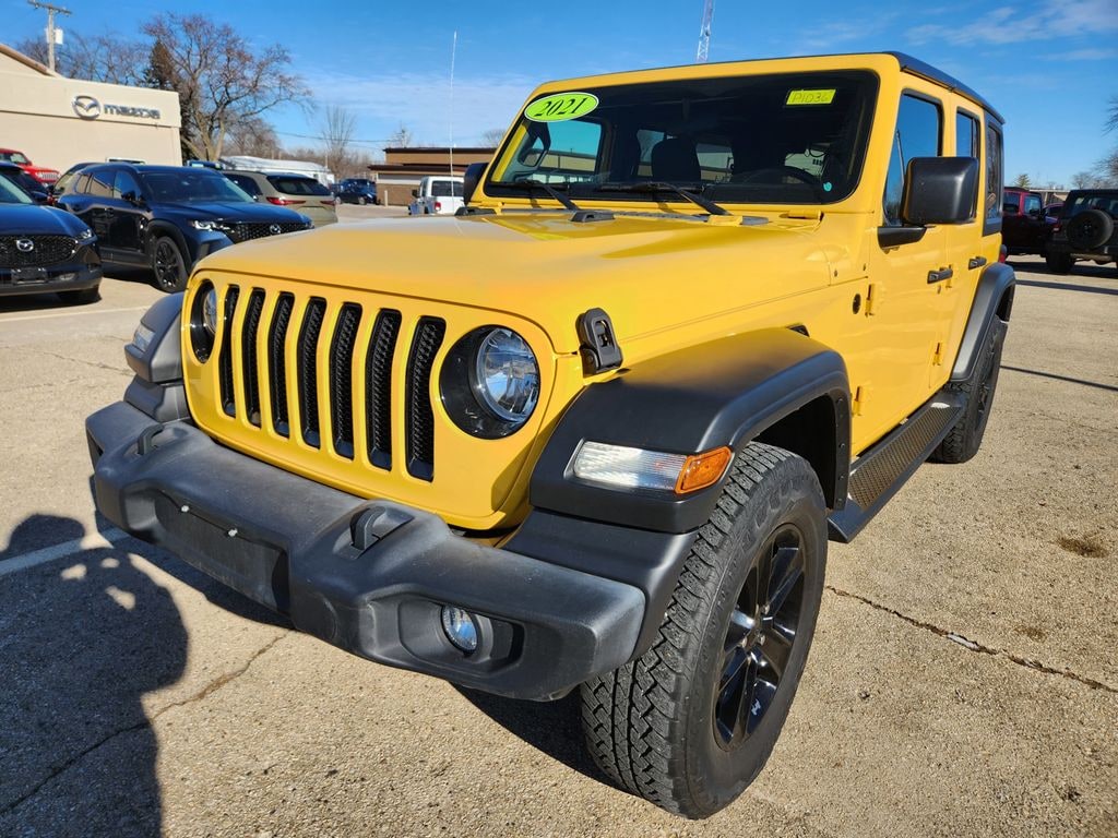 WELL MAINTAINED ONE OWNER ALTITUDE!!, HEATED SEATS, REMOTE START, APPPLE CARPLAY / ANDROID AUTO, SIRIUS XM SATELLITE RADIO, UCONNECT VOICE COMMAND WITH BLUETOOTH, AUTOMATIC CLIMATE CONTROL, Automatic Headlamps, Black 3-Piece Hard Top, Black Interior Accents, Black Trail Rated Badge, Body Color Grille w/Gloss Black Rings, Deep Tint Sunscreen Windows, Freedom Panel Storage Bag, Front 1-Touch Down Power Windows, Heavy Duty Suspension w/Gas Shocks, Leather Wrapped Steering Wheel, Matte Black Jeep Badge, MOPAR Hardtop Headliner, No Soft Top, Power Heated Mirrors, Quick Order Package 25L Altitude (DISC), Rear Window Defroster, Rear Window Wiper/Washer, Remote Keyless Entry, Security Alarm, Speed Sensitive Power Locks, Sun Visors w/Illuminated Vanity Mirrors, Wheels: 18" x 7.5" Gloss Black Aluminum, Wizard Black Instrument Panel Bezels, Wrangler Decal. Hellayella Clearcoat 2021 Jeep Wrangler Unlimited Sport Altitude 3.6L V6 24V VVT 4WD INSPECTED BY ASE CERTIFIED TECHNICIANS. Odometer is 26654 miles below market average!