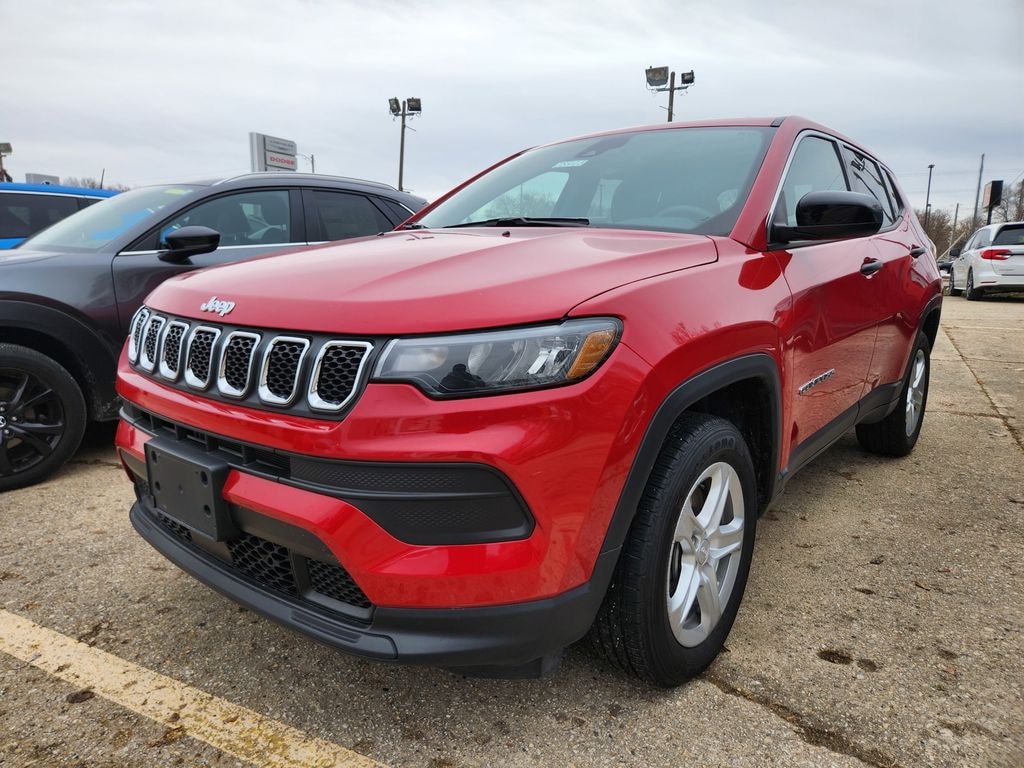 SAFE, ECONOMICAL, LOW MILE '23 COMPASS SPORT!!, APPLE CARPLAY / ANDROID AUTO, BLUETOOTH CONNECTIVITY, FULL SPEED FORWARD COLLISION WARNING, BLIND SPOT AND CROSS PATH DETECTION, ACTIVE LANE MANAGEMENT, PEDESTRIAN / CYCLIST EMERGENCY BRAKING, DROWSY DRIVER DETECTION, CRUISE CONTROL, BACK-UP CAMERA, REMOTE KEYLESS ENTRY, AUX INPUT & USB PORTS, STEERING WHEEL MOUNTED AUDIO CONTROLS, SIRIUS XM SATELLITE RADIO, 4WD, 17" x 7.0" Aluminum Wheels, Compass, Delay-off headlights, Fully automatic headlights, Low tire pressure warning, Telescoping steering wheel, Tilt steering wheel. Redline Pearlcoat 2023 Jeep Compass Sport 2.0L I4 DOHC 4WD INSPECTED BY ASE CERTIFIED TECHNICIANS. Priced below KBB Fair Purchase Price! Odometer is 21454 miles below market average!