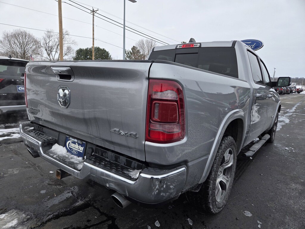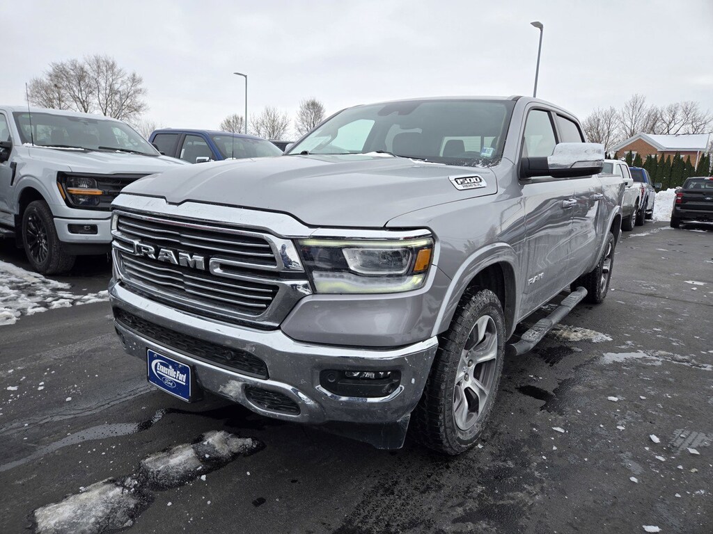 1500 Laramie LOCAL TRADE, #1 Seat Foam Cushion, 10 Speakers, 3 Rear Seat Head Restraints, 3.21 Rear Axle Ratio, 4 Way Front Headrests, 4-Wheel Disc Brakes, 48V Belt Starter Generator, 8.4" Touchscreen Display, ABS brakes, Adjustable pedals, Air Conditioning, Alloy wheels, AM/FM radio: SiriusXM, Apple CarPlay, Apple CarPlay/Android Auto, Audio memory, Auto Dimming Exterior Passenger Mirror, Auto High Beam Headlamp Control, Auto-dimming door mirrors, Auto-dimming Rear-View mirror, Automatic temperature control, Blind Spot & Cross Path Detection, Brake assist, Bumpers: chrome, Chrome Exterior Mirrors, Compass, Delay-off headlights, Driver door bin, Driver Seat Memory, Driver vanity mirror, Dual front impact airbags, Dual front side impact airbags, Electronic Stability Control, Foam Bottle Insert (Door Trim Panel), For More Info, Call 800-643-2112, Front anti-roll bar, Front Center Armrest w/Storage, Front dual zone A/C, Front fog lights, Front License Plate Bracket, Front reading lights, Front Seat Back Map Pockets, Front wheel independent suspension, Fully automatic headlights, Garage door transmitter, Google Android Auto, GPS Antenna Input, Heated door mirrors, Heated Front Seats, Heated front seats, Heated Steering Wheel, Heated steering wheel, Illuminated entry, Integrated Center Stack Radio, Integrated Voice Command w/Bluetooth, Laramie Level 1 Equipment Group (DISC), Leather steering wheel, Leather Trim 40/20/40 Bench Seat, Low tire pressure warning, Memory seat, Occupant sensing airbag, Outside temperature display, Overhead airbag, Overhead console, Panic alarm, ParkSense Front/Rear Park Assist w/Stop, ParkView Rear Back-Up Camera, Passenger door bin, Passenger vanity mirror, Pedal memory, Power 4-Way Driver Lumbar Adjust, Power 4-Way Passenger Lumbar Adjust, Power 8-Way Driver & Passenger Seats, Power door mirrors, Power driver seat, Power passenger seat, Power steering, Power windows, Quick Order Package 25H Laramie, Radio data system, Radio: Uconnect 4 w/8.4" Display, Rain Sensitive Windshield Wipers, Rear 60/40 Folding Split Recline Seat, Rear anti-roll bar, Rear seat center armrest, Rear step bumper, Rear Wheelhouse Liners, Rear window defroster, Remote keyless entry, Remote Tailgate Release, Security system, SiriusXM Radio Service, SiriusXM Satellite Radio, Speed control, Split folding rear seat, Steering wheel mounted audio controls, Tachometer, Tailgate Ajar Warning Lamp, Telescoping steering wheel, Tilt steering wheel, Traction control, Trailer Brake Control, Trip computer, Turn signal indicator mirrors, Variably intermittent wipers, Ventilated Front Seats, Ventilated front seats, Voltmeter. CARFAX One-Owner. Odometer is 935 miles below market average!